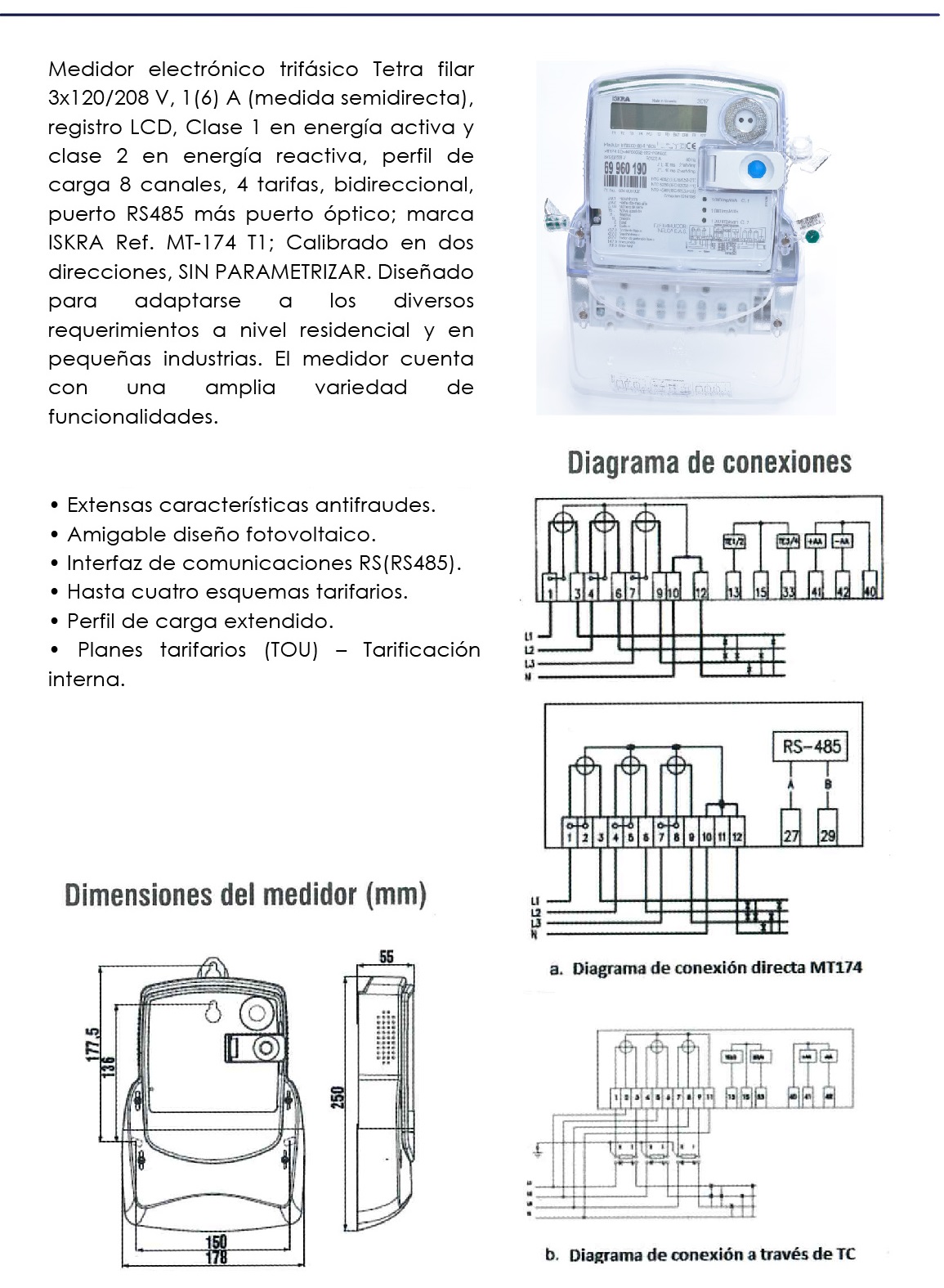 MEDIDOR ISKRA MED. DIRECTA TRI MT174 5/120AR